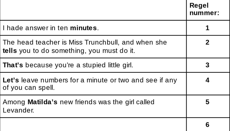 Här ska man skriva vilken regel av de sex olika ovan, det är.