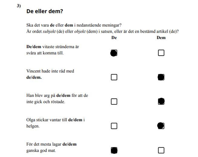 Om [de/dem] är objekt, ska det vara objektsformen (dem).