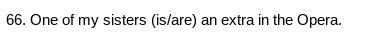 66: Jo, men du pratar ju inte om alla dina systrar, bara en av dem, och därför kan du byta ut one of my sisters mot she, vilket ger She is an extra in the Opera.