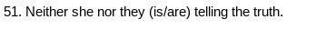 51: Regeln jag fått lära mig i detta fall är att man ska ta det som ligger närmast verbet, d.v.s. they, och därför ska det bli are. Troligen har det blivit fel i facit, kolla på regel 3 här: