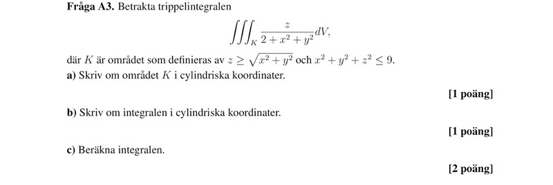 Jag förstår inte varför gränsen för Theta mellan 0 och 2pi? Jag trodde att det skulle bara vara 0 till pi då konen har gränsat klotet?