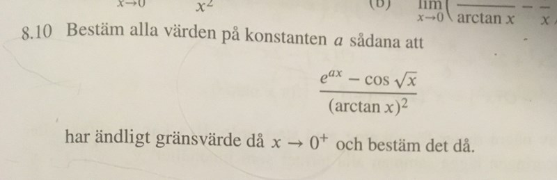 Härifrån är det ganska uppenbart att gränsvärdet enbart konvergerar ifall det vänstra bråkets täljare blir noll. Det ger , och därefter är det en ganska smal sak att bestämma gränsvärdet.