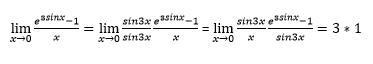Handviftandet undviks om bråket förlängs med sin(3x)/sin(3x). Faktorerna kan sedan grupperas om till standardgränsvärden. Möjligen vill man även förlänga med 3/3.