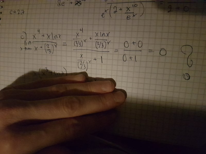Eftersom växer mycket snabbare än och går mot 0 när x går mot oändligheten, går uttrycket mot som går mot oändligheten.