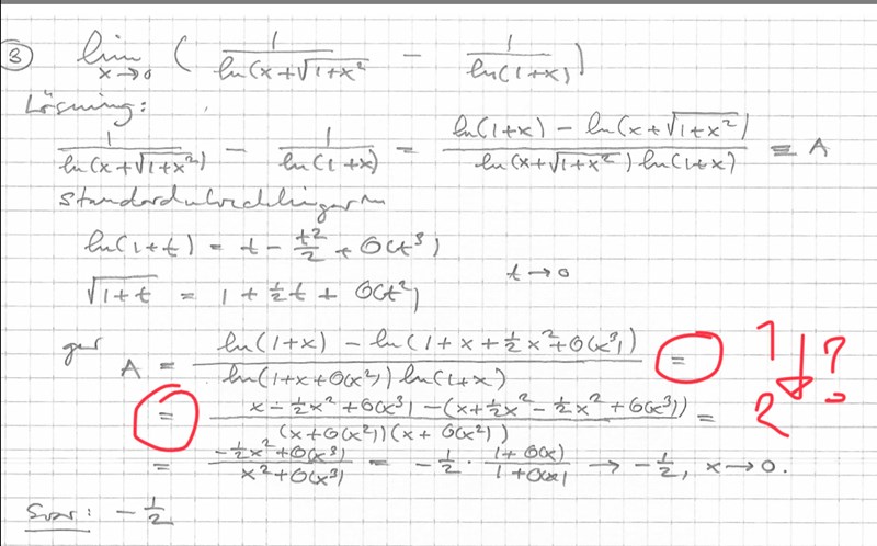 Sen måste man kolla att denna stämmer. ln(1+x+x2/2+O(x3))= x+x2 /2 -x2/2+O(x3).