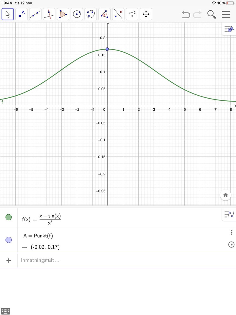 limx0(x-sin(x)x3)det blir 00  och jag kan använda L Hopital ruatt lösa utan dettall men jag tänker på
