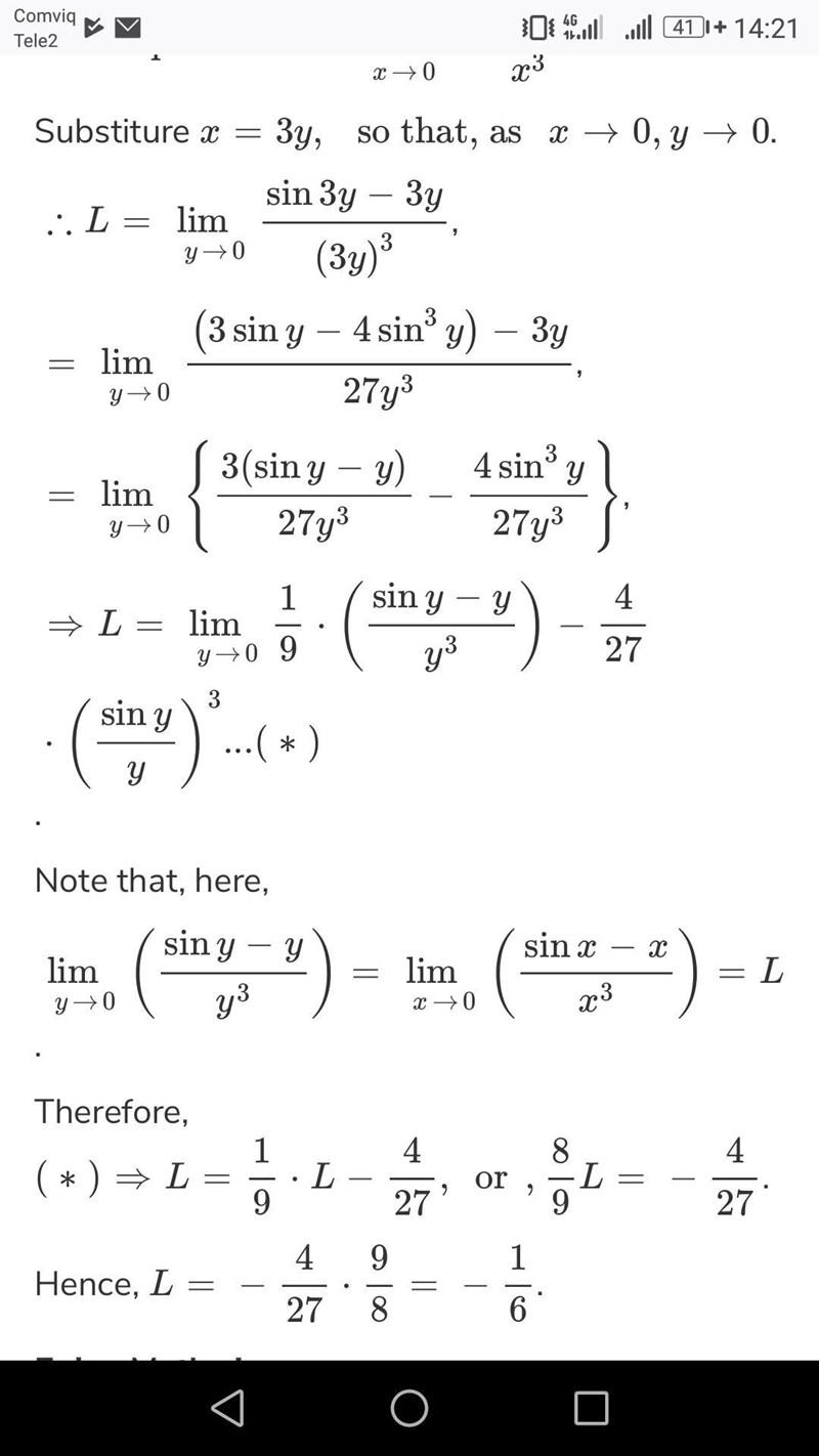 Jag hittade denna väg men jag håller inte med ett steg 4 när saprearas i två term eftersom mär man adera och substuera två termer måste gränsvärde för var och en existerar