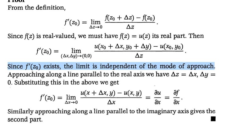 Om gränsvärdet (här derivatan) existerar i punkten så är det oberoende av hur du närmar dig punkten.
