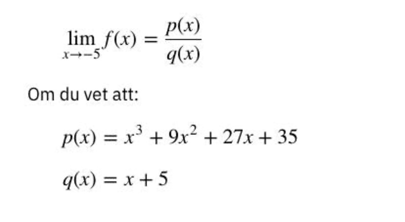 Visa att så att kan skrivas som en produkt där är ett visst andragradspolynom. Det sökta gränsvärdet blir då