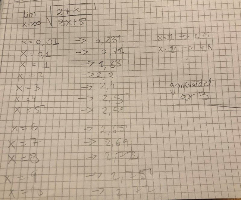 Jag kommer fram till att gränsvärdet är 3. Finns det en enklare metod som man kan använda för att lösa sån typ av fråga? Eller är det enda sättet att bara testa sig fram?