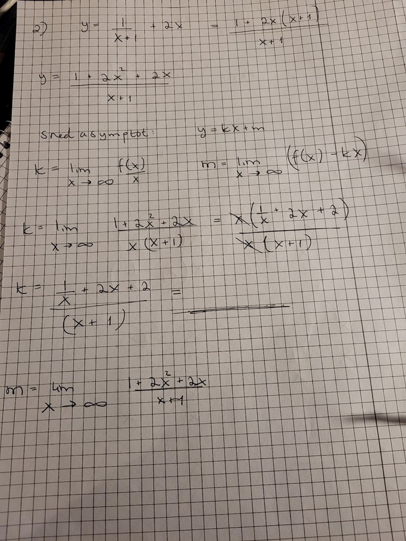 Jag började så här. Men fastnar för när man löser ut med gränsvärden så vill man ha x ensamt i nämnaren för det blir lättare då. Men jag lyckas i te med det. Vad kan jag tänka på?