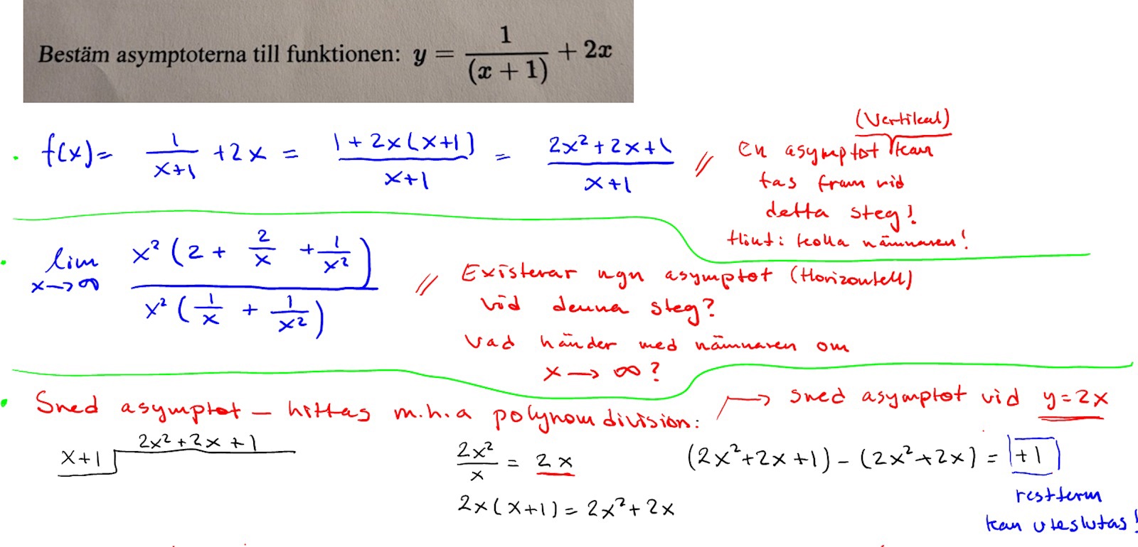 Vet inte om ni har läst polynomdivision än, men det är ett snabbt och effektivt sätt att hitta en sned asymptot
