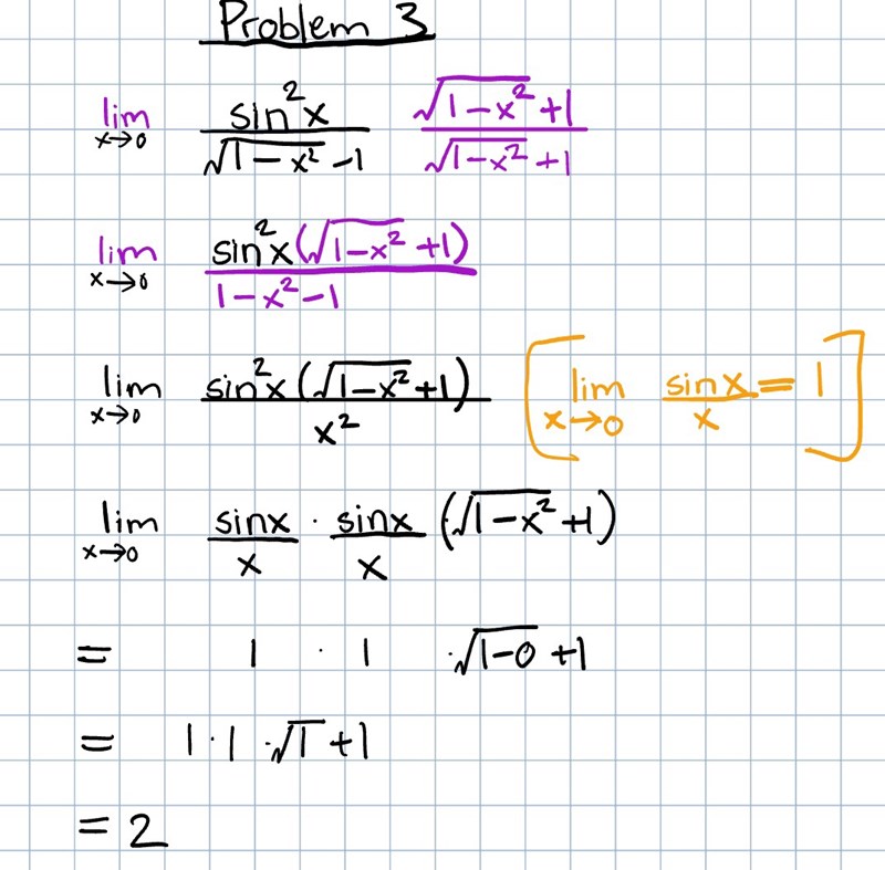 Hej! Testade att lösa den och jag förlängde med 1 (), alltså nämnarens konjugat. Sedan skrev jag om bråkuttrycket och använde sedan standardgränsvärdena.