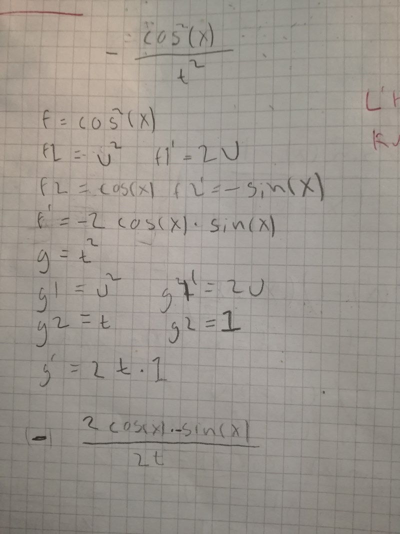 Nu ska t gå mot 0. Det gränsvärdet går bra att beräkna utan l'Hospital.