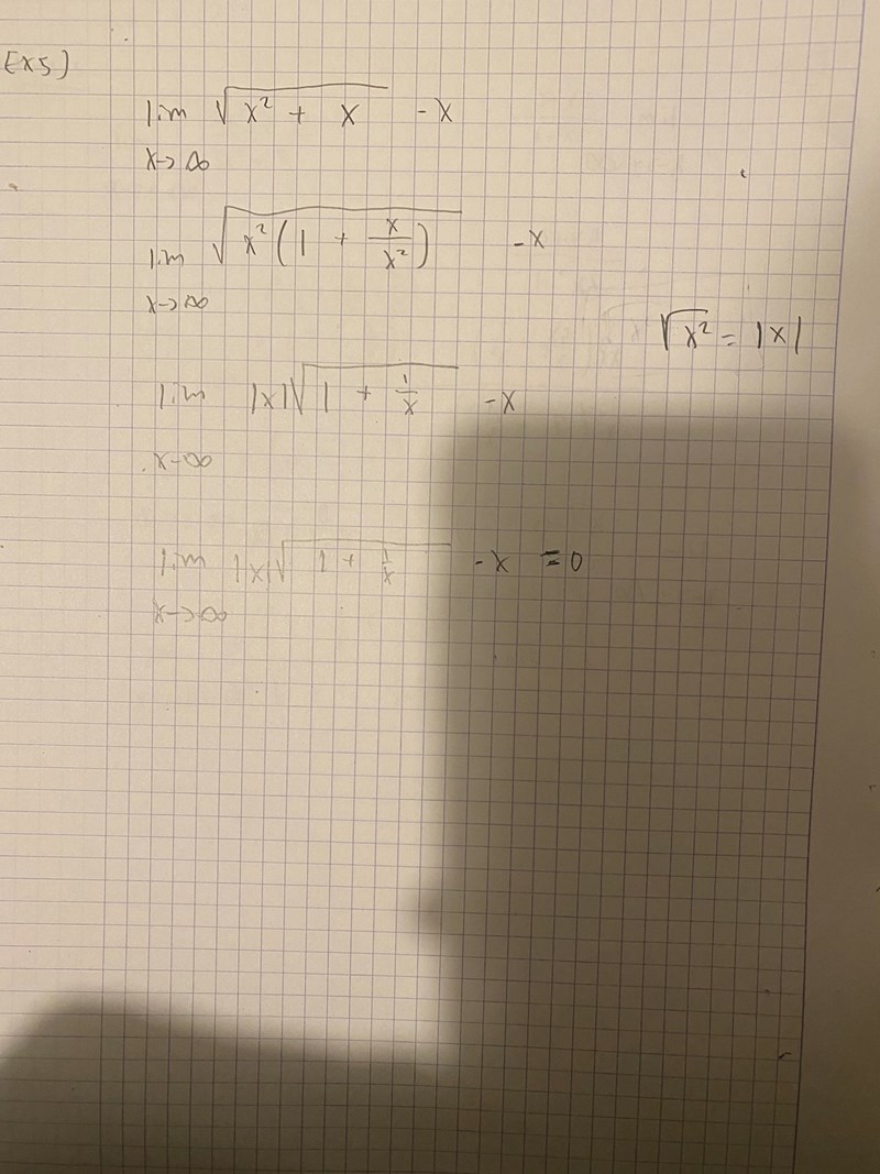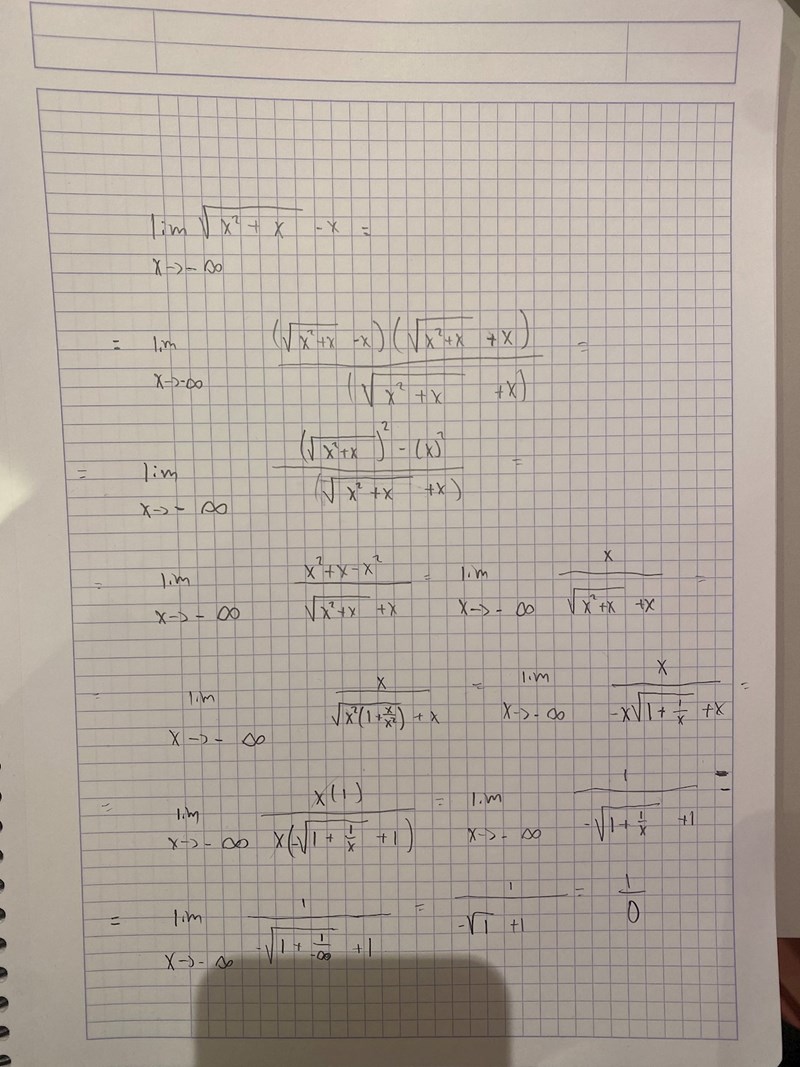 Jag bytte tecken för (x^2)^0.5 = -x om x< 0 , efter som x gick mot negativa oändligheten innebär detta att x är mindre än 0 och därav gjorde jag på det sättet