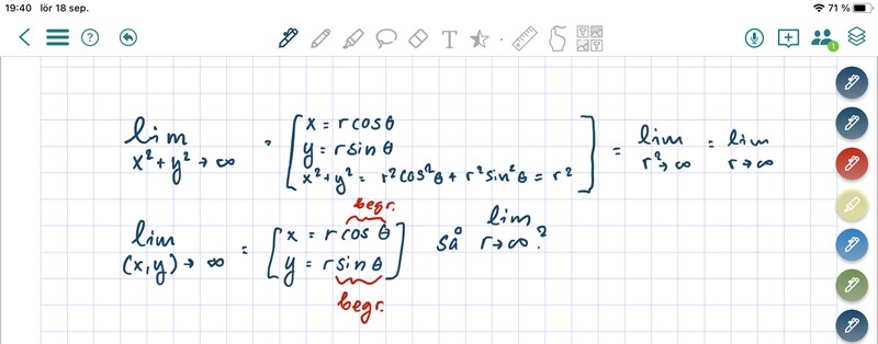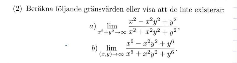 Ja den övre har jag inga problem med, med polära koordinater får jag ett gränsvärde men det är den undre jag inte riktigt vet vad jag ska göra…