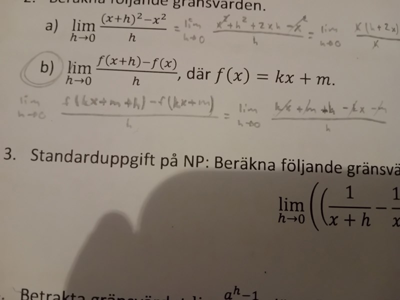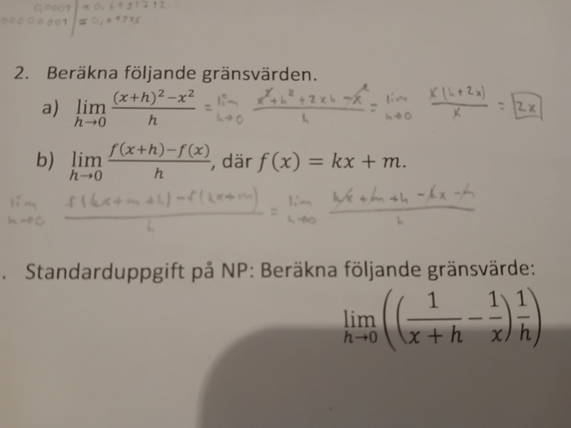 Med det sagt, du blandar in funktionsuttrycket () i funktionen f. Du använder derivatans definition, och sedan byter du ut mot :