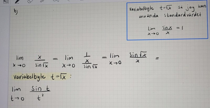 Dracaena skrev:tillhör inte domänen av då inte är definierat för . Det är alltså inte tillåtet att beräkna vänstergränsvärdet i detta fallet.