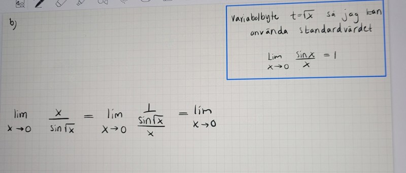 Du kanske kom direkt i huvudet att man ska ta 1/rotenur x men jag gjorde ett mellansteg (det röda). Är detta rätt?