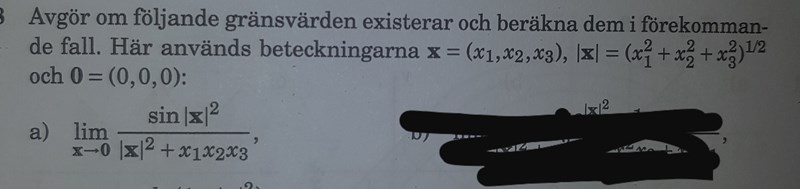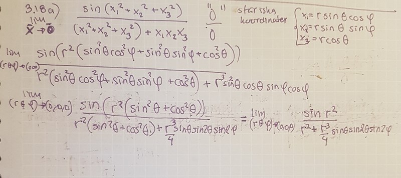 Jag tror att jag är en bit på vägen. Gränsvärdet ska vara =1. Gränsvärde för sinr^2/r2 då r->0 är ju 1 så det borde inte vara så långt ifrån.