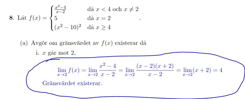 För att det uttrycket bara gäller när och alltså inte när x går mot 2.