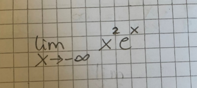Jo jag tror jag lyckades lösa den om jag tänker rätt att man kan säga att den går emot 0, eftersom att e^x växer snabbare än x^2.. alltså e^x ”vinner”