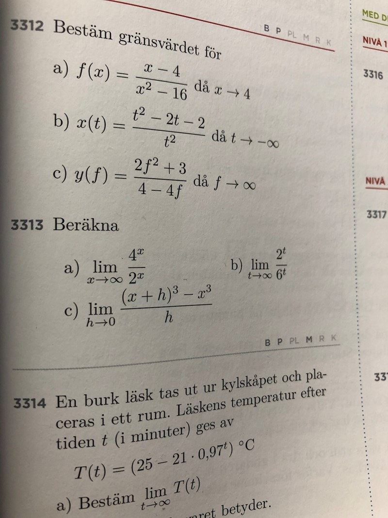 Hej! Jag behöver hjälp med 3313c. Om h hade varit lika med 0, så hade ju täljaren och nämnaren bara varit 0 och kvoten skulle vara odefinierad. Jag vet att h aldrig bli 0, men vet inte hur jag ska tänka/göra. Så jag är mycket tacksam för hjälp! :)