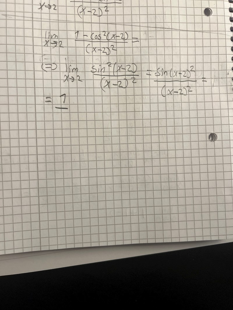 Sin^2(x-2) / (x-2)^2. Kan man förkorta det till sin(x-2)/ (x-2)? Det var det jag gjorde i just det steget