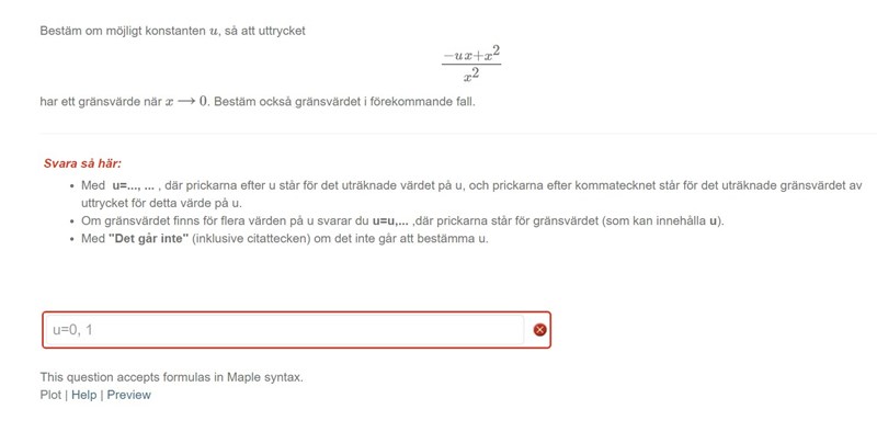 Bestäm om möjligt konstanten u , så att uttrycket