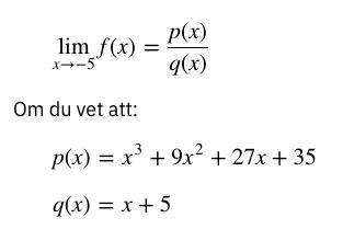 Tredjegradspolynomet i täljaren blir också 0 om du sätter in -5. Vad innebär det för tredjegradspolynomet?
