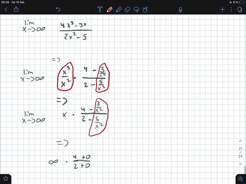 men varför får vi bryta ut x^3, om 3x inte har x^3 i termen? Man måste ju ha samma på både täljare och nämnare för att bryta ut.