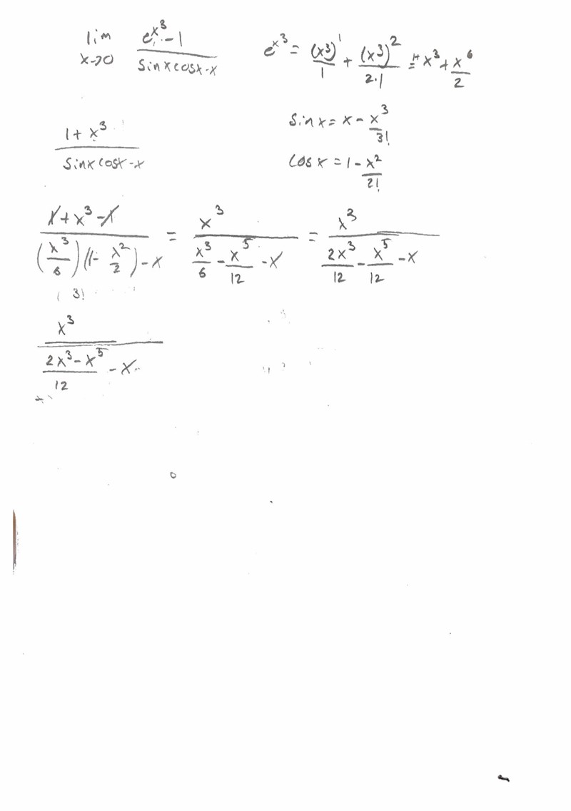 Där det står x3/6 i din nämnare borde det stå (x - x3/6).