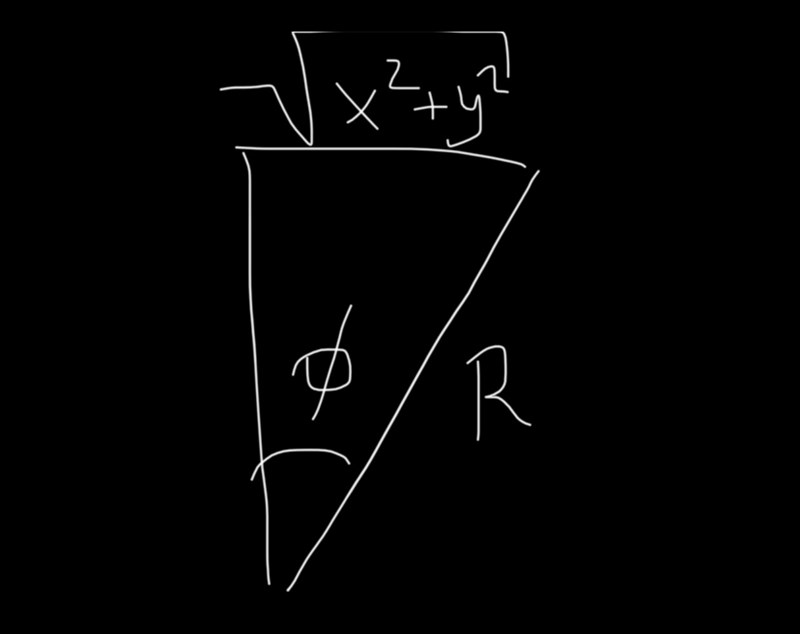 Om vi tittar på figuren i första bilden så borde den stämma, här har jag inte flyttat på den eller något. Värdena på phi och theta borde också stämma tycker jag. Värdet på R är jag dock osäker på, som jag sa tidigare tänker jag att det beror på phi men vet inte riktigt hur jag ska uttrycka det. Tänkte att jag kunde ta fram R mha denna figur men det stämmer inte, ex blir R=sqrt(x²+y²)/sinphi, fel.