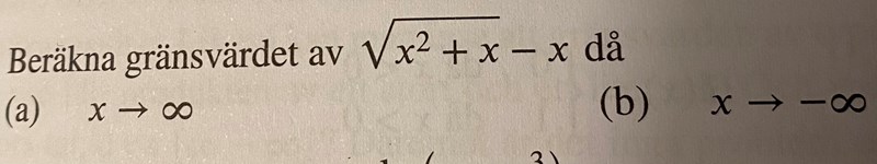 men hur gör jag på b)? Jag tänkte att det blev samma eftersom jag förlängt med konjugatatet och får samma värde på gränsvärdet om jag sätter in -oo som när jag sätter in oo.