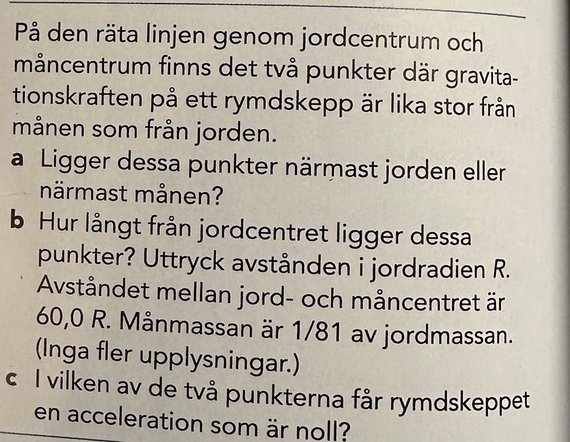 förenkla och lös sen ekvationen, men det ger dig bara en av punkterna, som ligger mellan jord och måne.