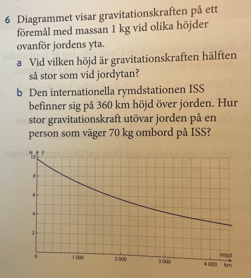 På uppgift b så fattar jag inte var jag ska göra med informationen om att personen väger 70 kg. Jag fattar att avståndet från jordens yta påverkar gravitationskraften. Hur räknar jag ut stor gravitationskraft det är?