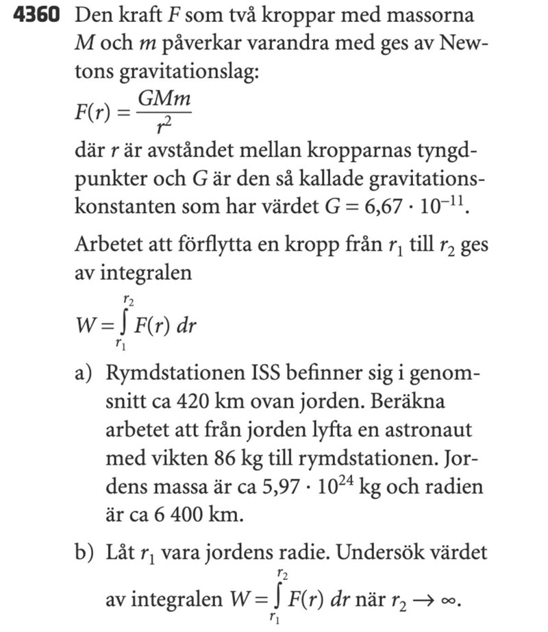 Hej! Jag förstår inte riktigt varför svaret blir 3,3 * 10^8 Joules enligt facit, men 3,3 * 10^11 Joules enligt mina beräkningar. Har jag konverterat något fel? Jag sätter att (km), sedan beräknar jag integralen som vanligt, dvs