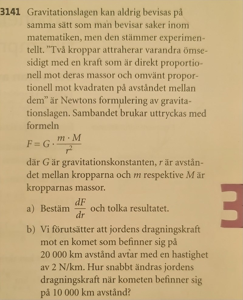 Det du löste i a, dF/dr, är det du ska använda i b uppgiften.