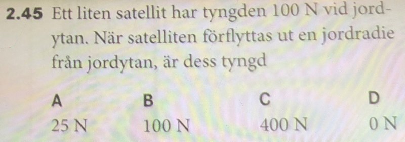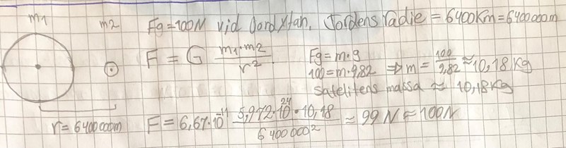 Nej, där hade jag fel. Avståndet var från början en jordradie då satelliten var vid jordytan. När den förflyttas en jordradie så måste då r vara jordens diameter.