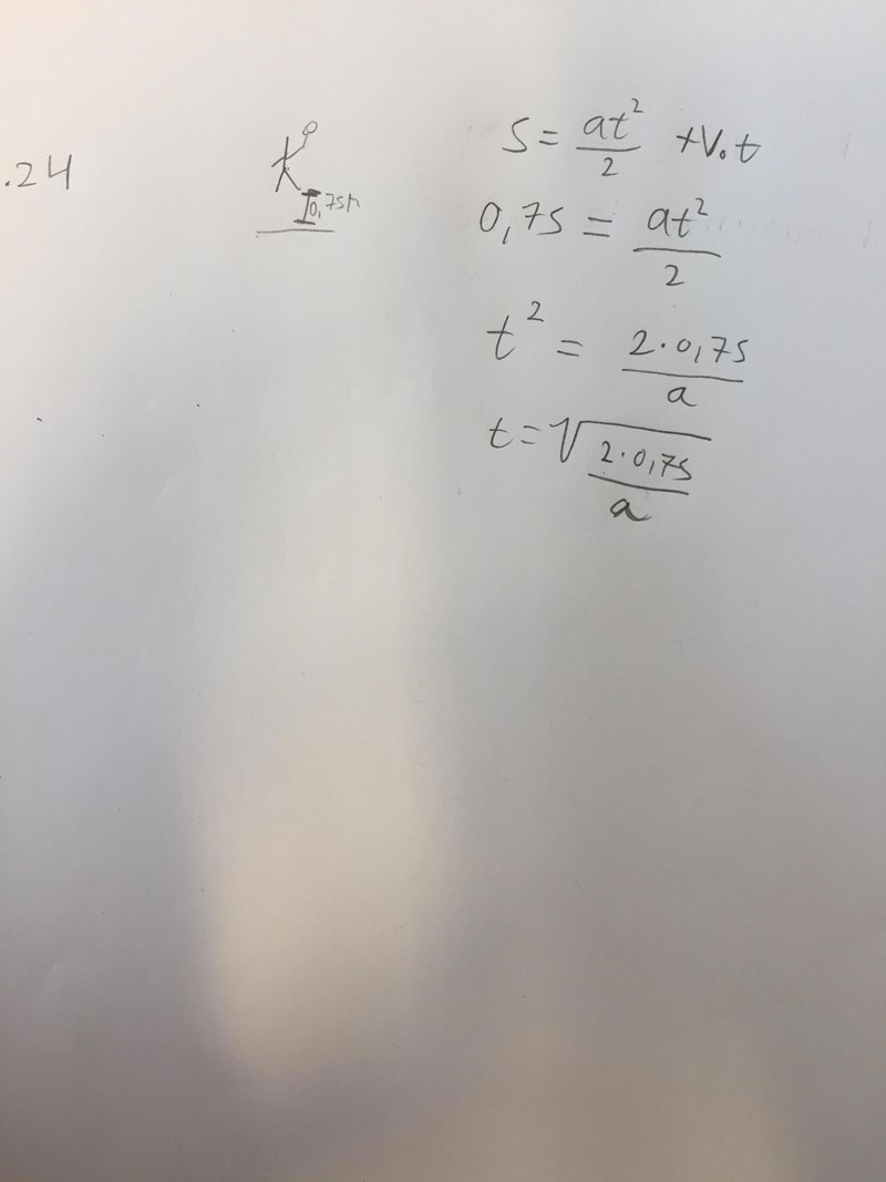 Det enklaste är att bara räkna på "nerhoppet" och dubbla tiden. Använd formeln . Du vet att s = 0,75 m, att a = 9,82 m/s och att = 0.