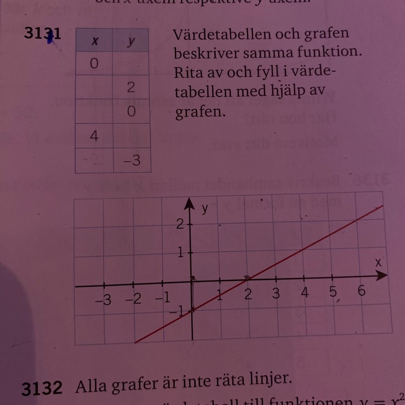 På andra raden ska du fylla i vilket x-värde grafen har då y = 2.