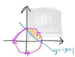 Jag förstår inte din beräkning. Varför har du ritat upp linjen y=-x+1y=-x+1? Vad har den med saken att göra?