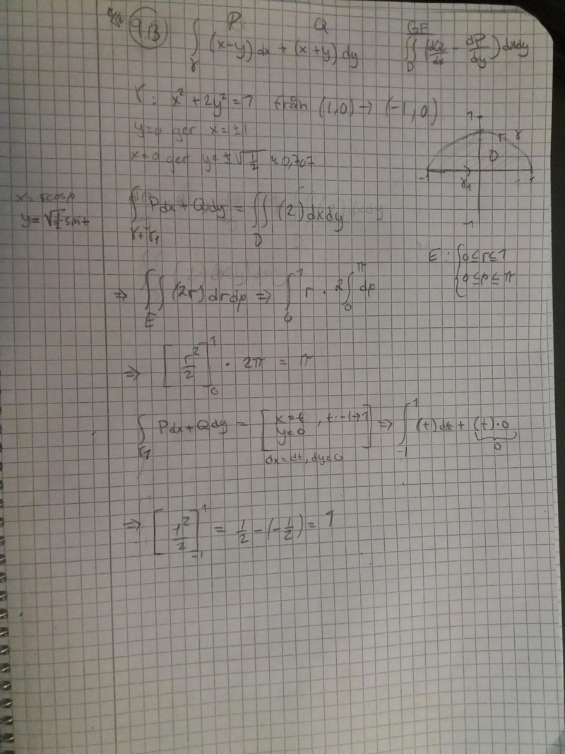 Greens formel, kurvintegral halvellips. Flervariabelanalys