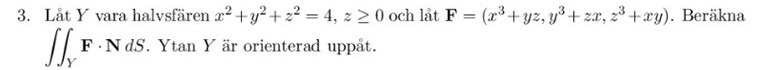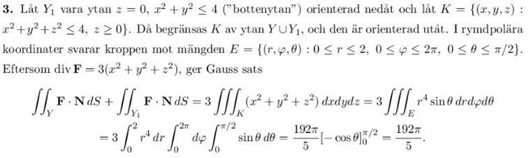 Det jag dock undrar över nu, är inte svaret här för hela området inklusive locket? Det vill säga, det ser ut som de beräknat trippelintegralen och satt de som svar, och trippelintegralen motsvarar ju flödet av Y och Y1 och i frågan vill de endast ha för Y?