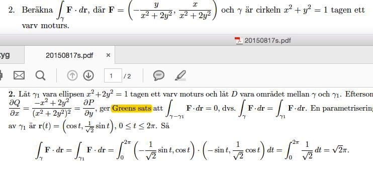 mrlill_ludde skrev:Albiki skrev:I online-programmet Desmos ritar man upp cirkeln (orienterad moturs) och ellipsen (orienterad moturs) så att kurvan är orienterad så att området () mellan kurvorna ligger till vänster när man rör sig längs kurvan .