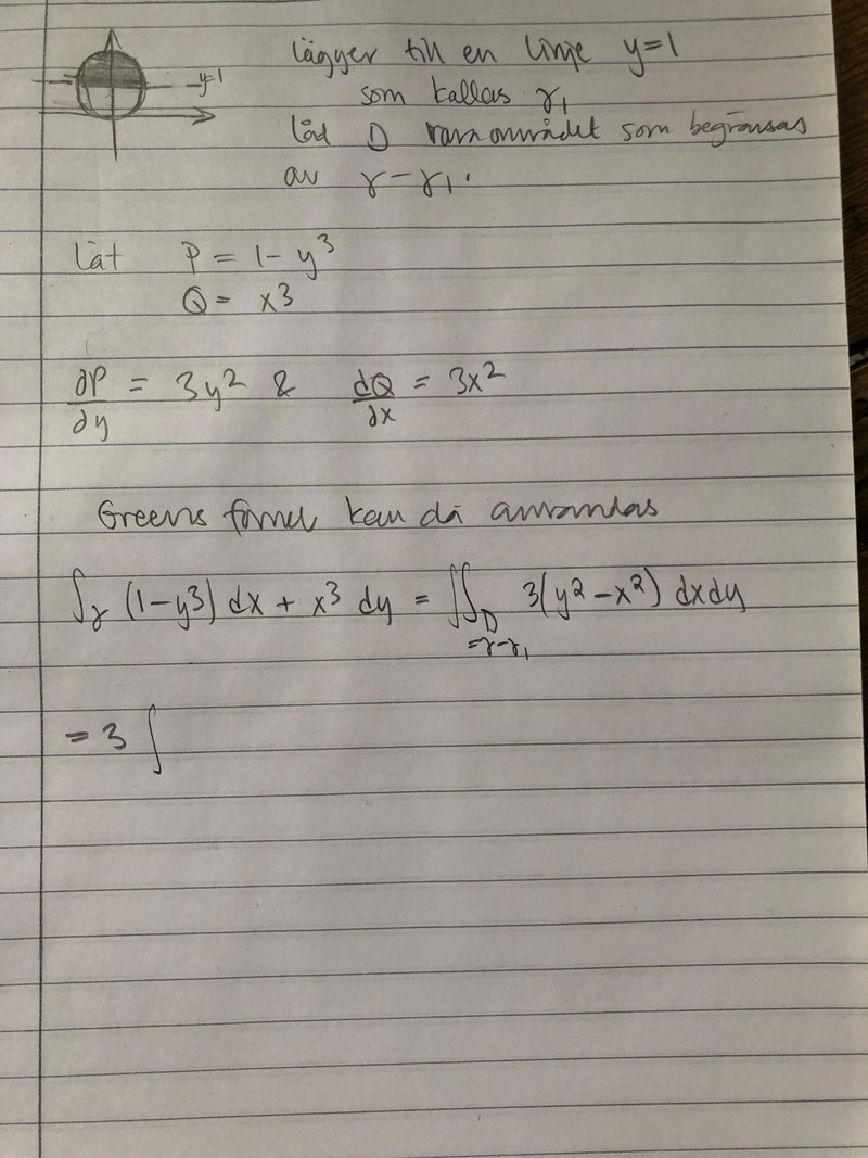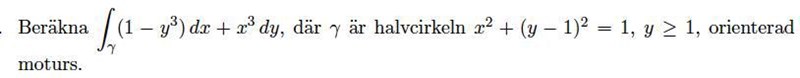 Förbind halvcirkelns ändpunkter och med den räta linje som startar i punkten och slutar i punkten så att kurvan är enkel och sluten och som du kan tillämpa Greens teorem på.