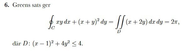 Dxdxdy=D'2u+1·2·dudv=4D'ududv+2D'dudv=(symmetri igen)=0+2D'dudv=2·Arean av D'=2·π.