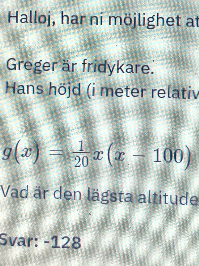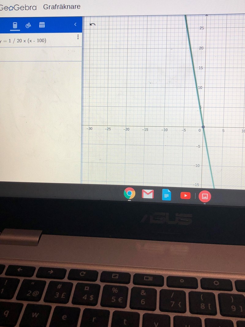 Man ska med hjälp av den funktionen hitta minipunkten. Men när jag skriver upp grafen på GeoGebra blir det en rätlinje. Vart är felet?