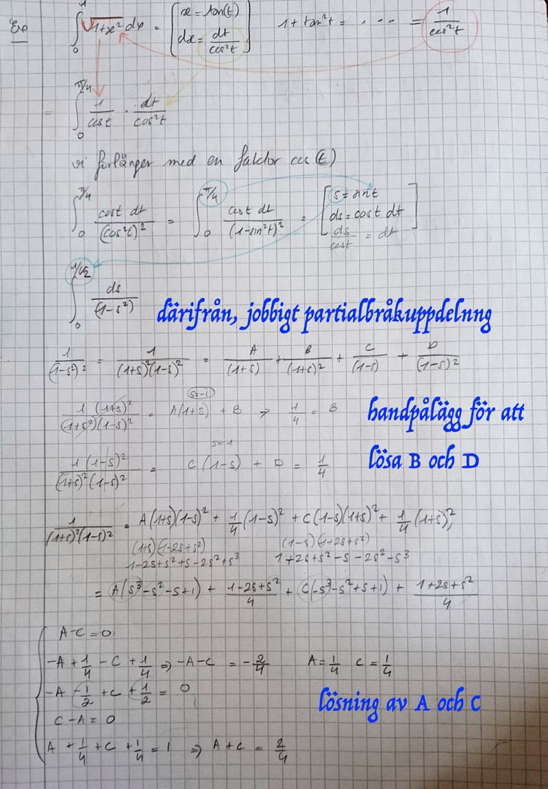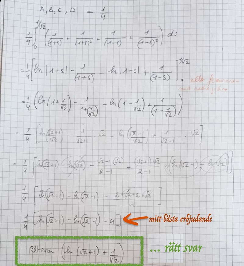 Som du ser blev den här integralen extremt krånglig på grund av -integralen. Jag vet inte om du är bekant med de hyperboliska trigfunktionerna, men om du använder dessa blir integralen betydligt enklare: