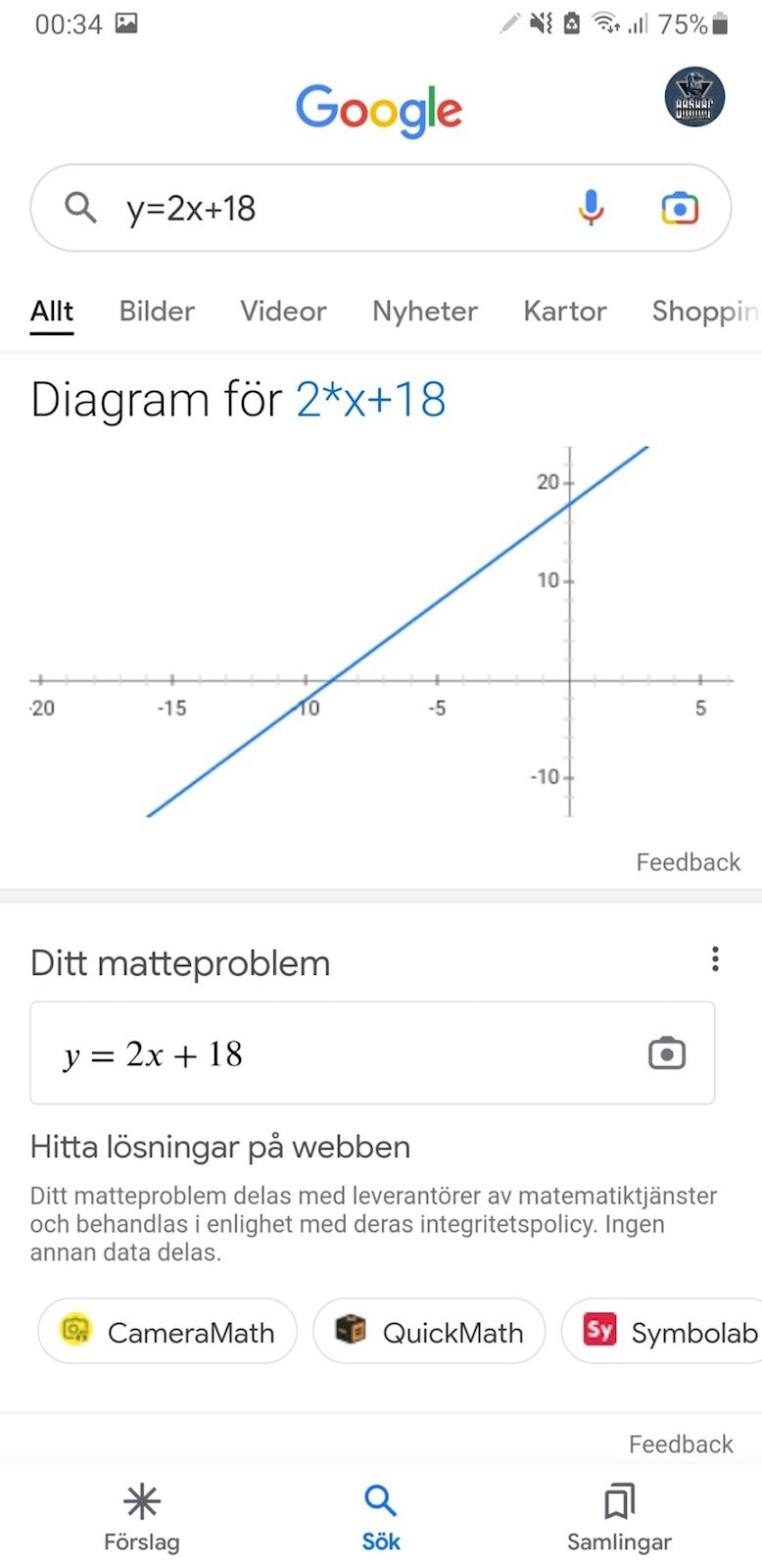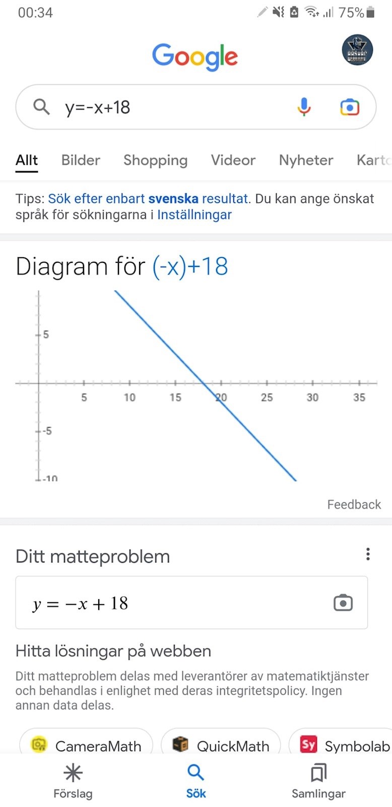 Jag undrar ifall jag ska svara den här frågan som nedan eller ska jag använda K1×K2=-1 reglen och svara på så sätt Y=-x/2+18?